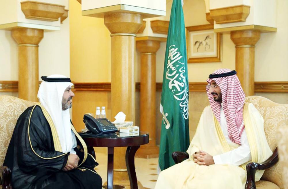 الأمير عبدالله بن بندر يستقبل العميد الأسمري. (واس)