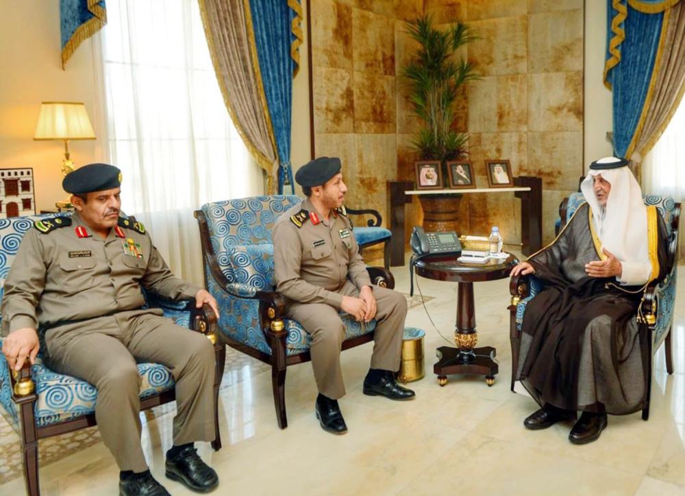 الأمير خالد الفيصل مستقبلا اللواءين الغامدي والشتري. (واس)