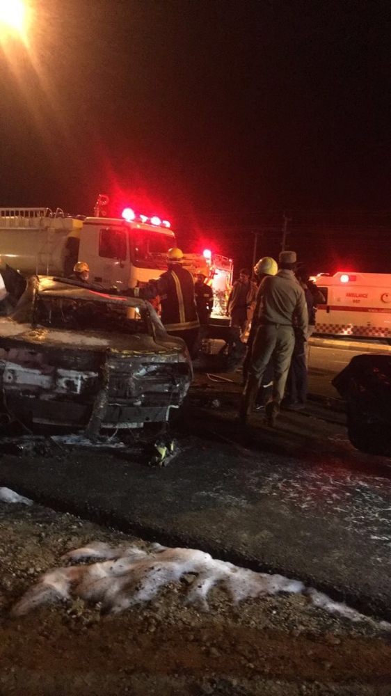 وبحسب المتحدث باسم هيئة الهلال الأحمر في المحافظة شادي بن عابد الثبيتي، فإن غرفة العمليات تلقت بلاغا بعد مغرب أمس بوجود تصادم وقع بين مركبتين، وعلى الفور توجهت 4 فرق إسعافية وفرقة تدخل سريع وفرقة نقل غير إسعافي من مركز قياء إلى الموقع، وعند وصول أول فرقة بواقع استجابة 4 دقائق وإعطاء صورة أولية لوحظ أن إحدى المركبات مشتعلة بالنار وبداخلها شخصين تفحمت أجسادهم إثر الحريق المندلع فيها، وحالة وفاة بالمركبة الأخرى وأخرى خطيرة نقلت عن طريق الفرقة الإسعافية للمستشفى وعند وصولها فارقت الحياة.