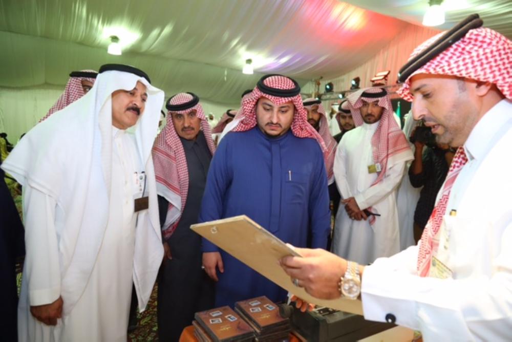 وكان في استقباله أثناء وصوله العقيد عبد الله بن حمد الجعوان رئيس لجنة التشريفات بالجنادرية ورئيس الوفد الدكتور نواف بن ذويبان الخالدي ورؤساء اللجان المشاركة . وتجول في الجناح، واطلع على محتوياته التي ضمت جناح جامعة الجوف كذلك معرض إدارة تعليم الجوف و هيئة السياحة والتراث الوطني وجمعية الثقافة والفنون والنادي الأدبي ومجلس شباب الجوف ومركز عبدالرحمن السديري الثقافي بالجوف ومديرية الشئون الصحية بالجوف والقريات كذلك شركة الجوف للتنمية والزراعة , كما أطلع على منتجات الجوف من الزيتون والزيت والتمور والسمح ومشاركة جناح الصقور .