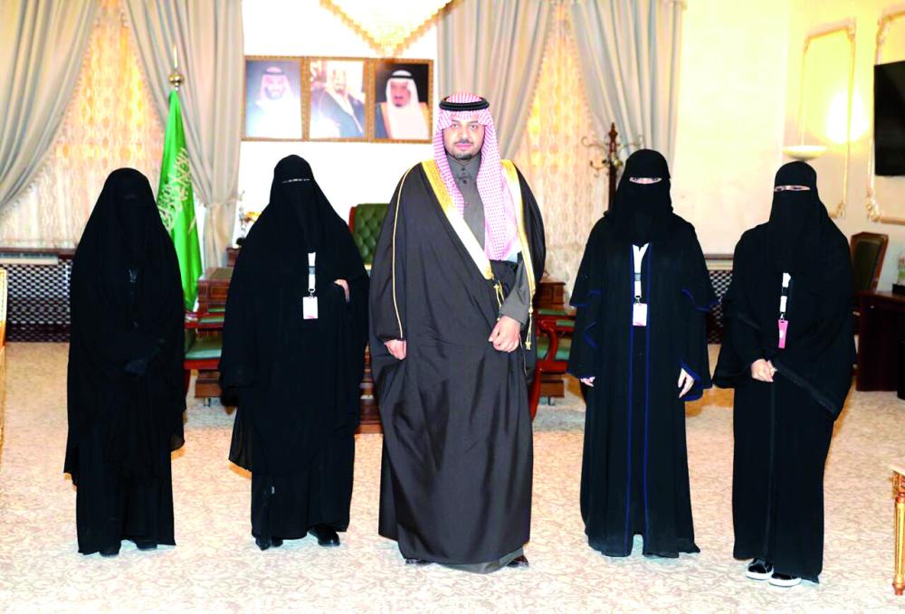 الأمير فيصل بن خالد خلال استقباله مديرة ومنسوبات مركز الكوثر. (عكاظ)