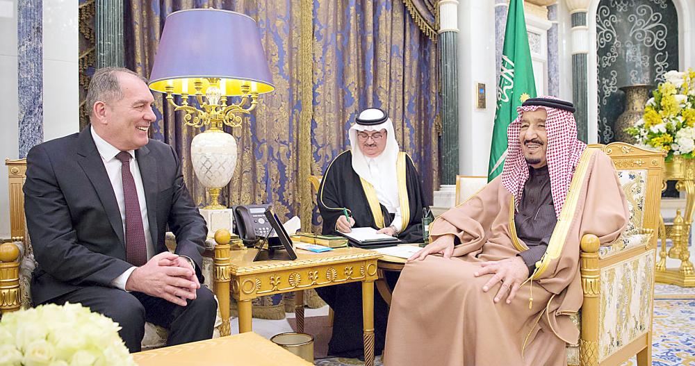 وجرى خلال الاستقبال، استعراض العلاقات بين المملكة وروسيا، وسبل تعزيز وتطوير التعاون الثنائي في مجالات الطاقة، خصوصا في مجال إعادة التوازن لأسواق البترول من خلال قيادة الدول المنتجة لخفض الفائض من مخزونات البترول العالمية. حضر الاستقبال، وزير الداخلية الأمير عبدالعزيز بن سعود بن نايف بن عبدالعزيز، ووزير الدولة عضو مجلس الوزراء الدكتور مساعد بن محمد العيبان، ووزير الطاقة والصناعة والثروة المعدنية المهندس خالد بن عبدالعزيز الفالح، ووزير الدولة للشؤون الخارجية الدكتور نزار بن عبيد مدني، وسفير روسيا لدى المملكة سيرجي كوزلوف. كما استقبل خادم الحرمين الشريفين أمس وزير الأمن في جمهورية البوسنة والهرسك دارقان ميكتيتش.