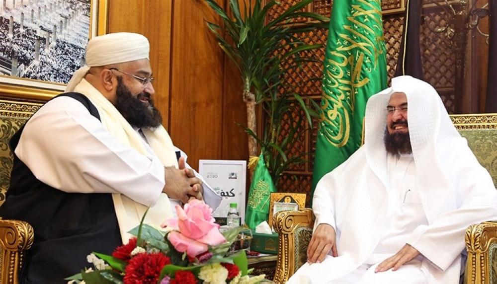 استقبل الرئيس العام لشؤون المسجد الحرام والمسجد النبوي عبدالرحمن بن عبدالعزيز السديس بمكتبه بالرئاسة اليوم (الأحد) رئيس علماء جمهورية باكستان الإسلامية الدكتور طاهر محمود أشرفي.