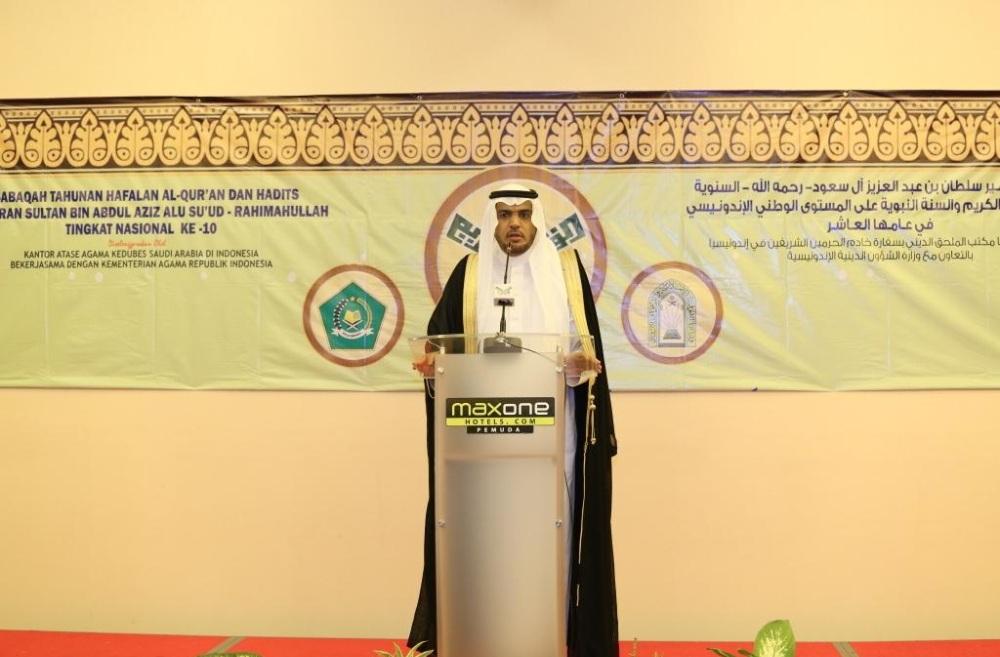 فيما أشار الملحق الديني في سفارة المملكة بإندونيسيا سعد بن حسين النماسي، في كلمة له، إلى جهود المملكة العربية السعودية في خدمة القرآن وأهله، داعيا لأصحاب الفضل في رعاية هذه المسابقة والعناية بها، ومن أسهم فيها وعلى رأسهم الأمير سلطان بن عبدالعزيز -رحمه الله- الذي كان له قصب السبق في رعايتها والتكفل بها، كما أثنى على الحكومة الإندونيسية وتعاونها المثمر في إنجاح هذه المسابقة وتذليل كافة الصعاب، ووجه نصيحته للطلاب المشاركين، وحثهم على تقوى الله والعناية بمراجعة القرآن والعناية به والعمل بمضمونه، كما نصح لجنة التحكيم ببذل الوسع في العناية بالحفاظ والتعاون معهم دون مجاملة أو محاباة لأحد.