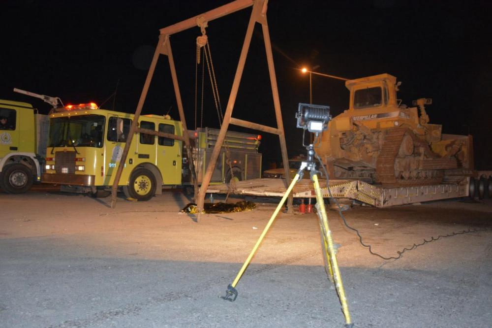 وكشف المتحدث باسم الدفاع المدني بمنطقة مكة المكرمة العقيد سعيد سرحان أن فرق الإنقاذ بمدني جدة باشرت بلاغ عن احتجاز عامل عربي، يعمل في مجال الميكانيكا احتجز أسفل آله محمل عليها بلدوزر، سقط أثناء أعمال الصيانة والتي كان يجريها المتوفي، واسهمت أطنان الحديد التي يدنها البلدوزر دون اخراج العامل ليتم استدعى تدخل فرق الإنقاذ التابعه لمدني جدة، التي باشرت أعمال رفع كتل أطنان من الحديد، تمثل لوبد محمل عليه بلدوزر في محاولة لانقاذ حياة المحتجز.
