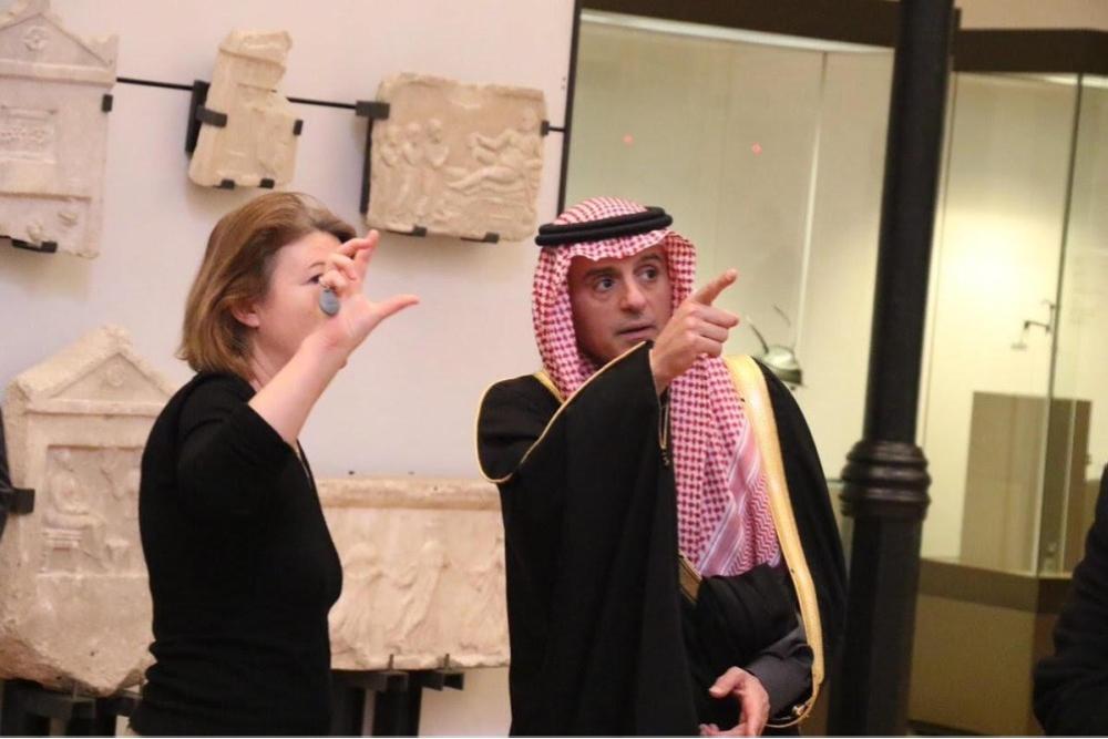 واطلع الجبير على مقتنيات المتحف كما استمع إلى شرح عن أقسام المتحف ومحتوياته الذي يعد أحد أكبر المتاحف في منطقة البلقان.