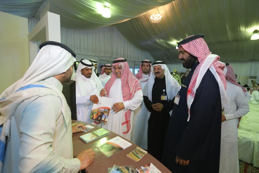 واستهل المهندس الفارس زيارته بالأجنحة الحكومية، مستمعاً لشرح عن تراث وثقافة منطقة الجوف، ثم شاركت فرقة الدحة التي تميزت بعرضها.
