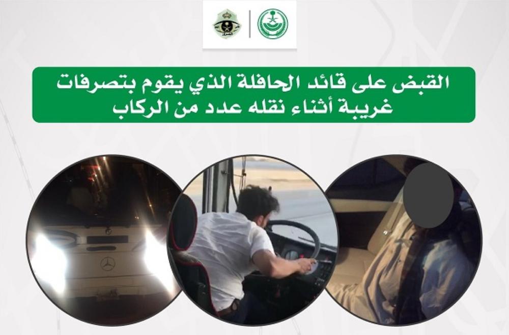 وقال المرور في بيان عبر "تويتر"، اليوم (الجمعة): "إشارة إلى المقطع المرئي المتداول عبر وسائل التواصل الاجتماعي، والذي يظهر فيه قائد حافلة تُقل مجموعة من الركاب وهو يقوم بتصرفات غريبة تعرض الحافلة وركابها للخطر، وبناء على ذلك، فقد تم البحث والتحري وتحليل المقطع، حيث اتضح فيما بعد أنه بالقرب من نقطة الجدية بالرياض، وقام ذلك الشخص بعد انتشار المقطع بالتمويه على الجهات الأمنية المختصة وركب حافلة أخرى متجه من منطقة الرياض إلى العاصمة المقدسة".