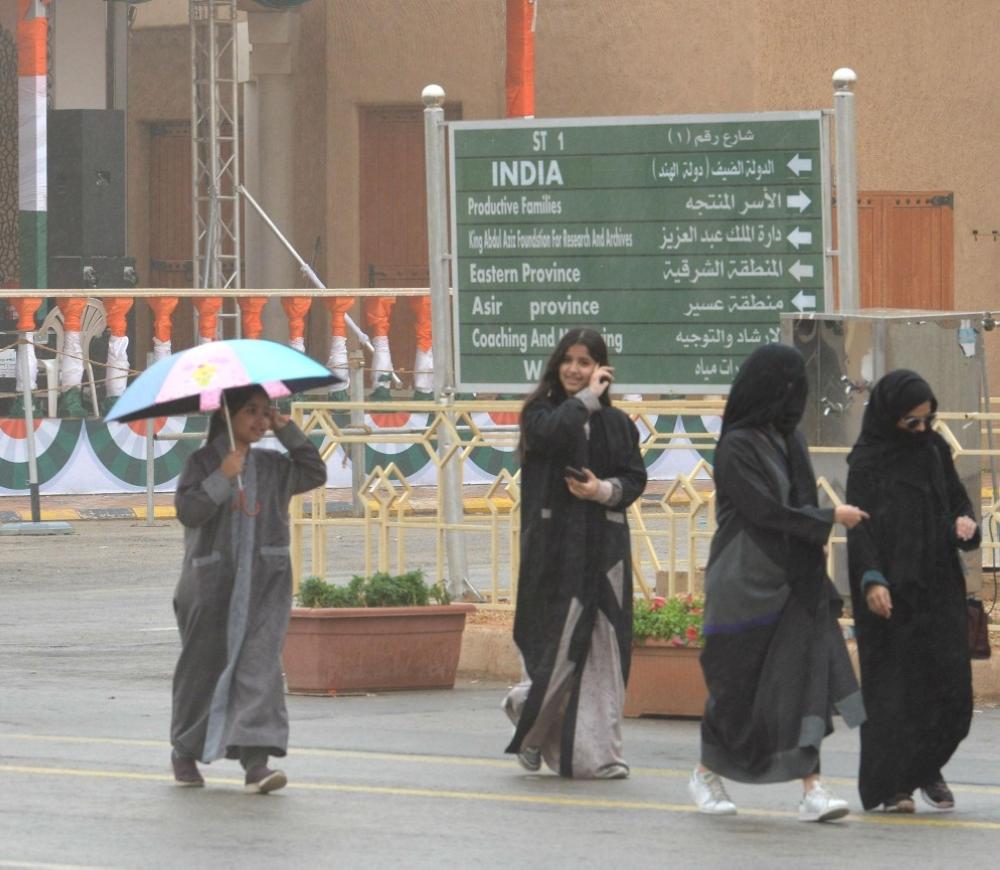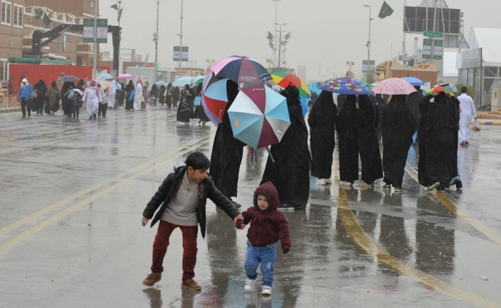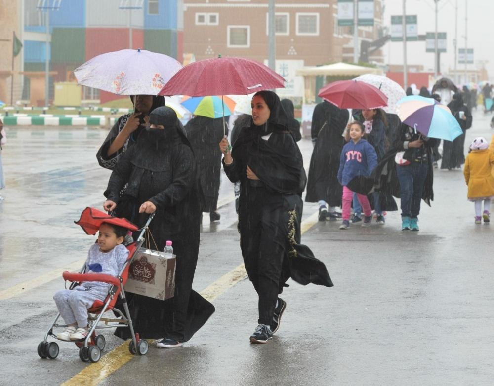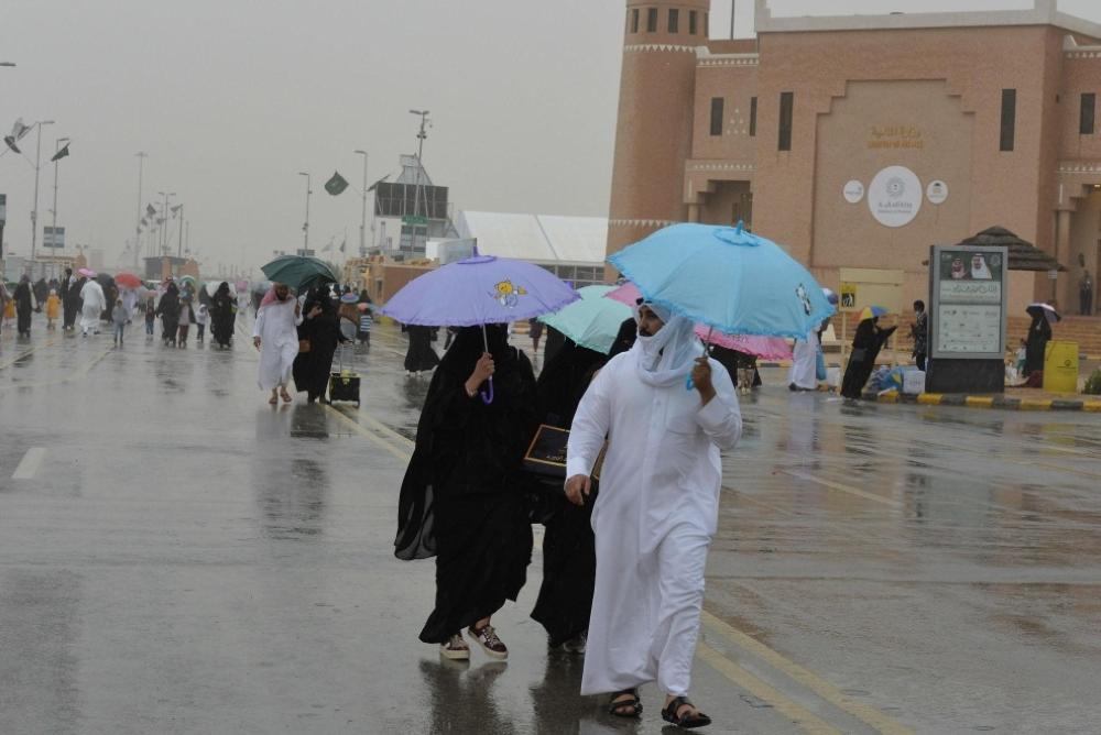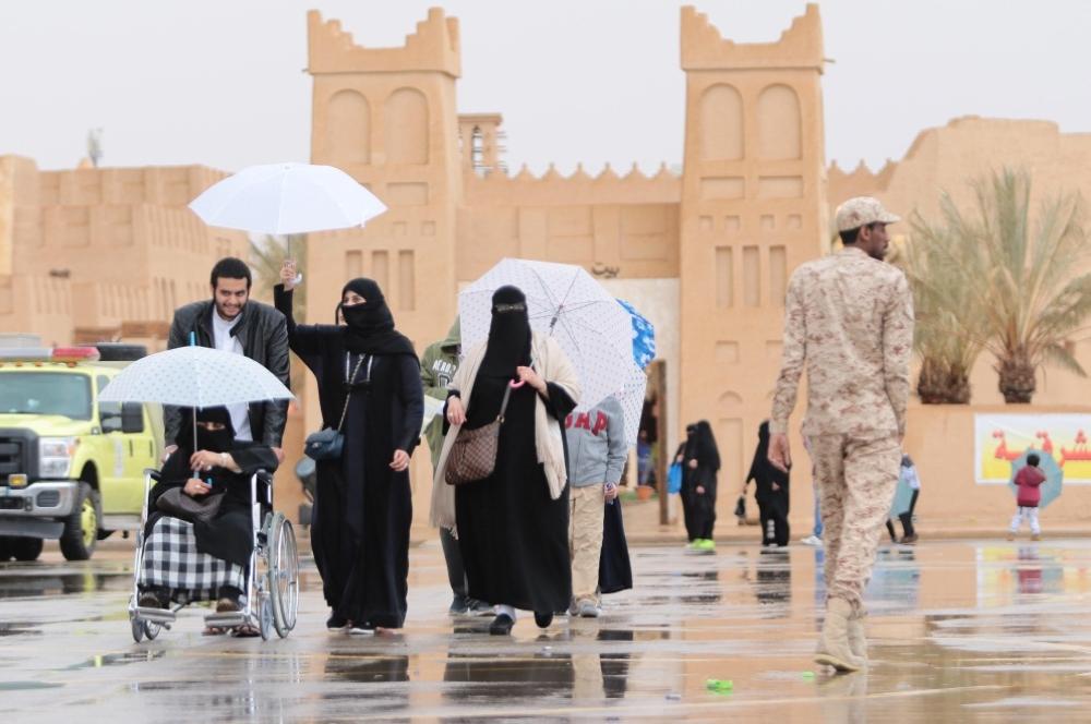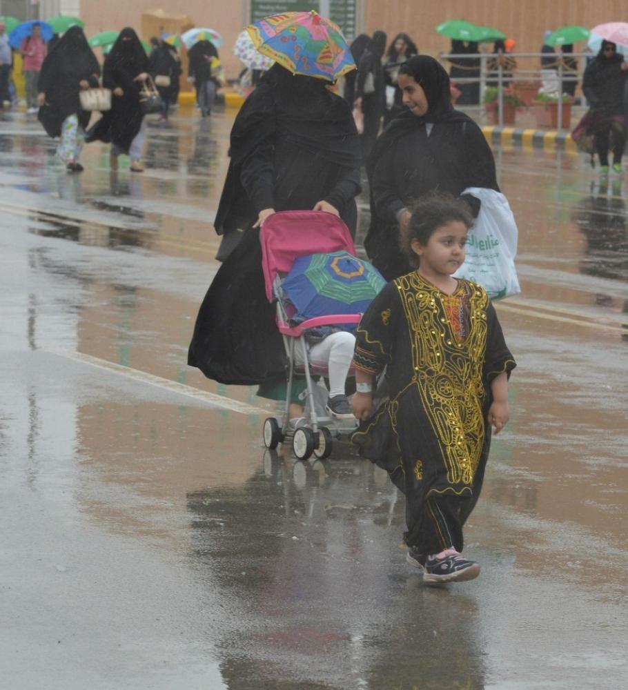 هطلت اليوم (السبت) أمطار من خفيفة إلى متوسطة على القرية التراثية بالجنادرية، التي شهدت إقبالاً كبيراً من الزوار الذين حرصوا على الاستمتاع بهذه الأجواء على أرض المهرجان.