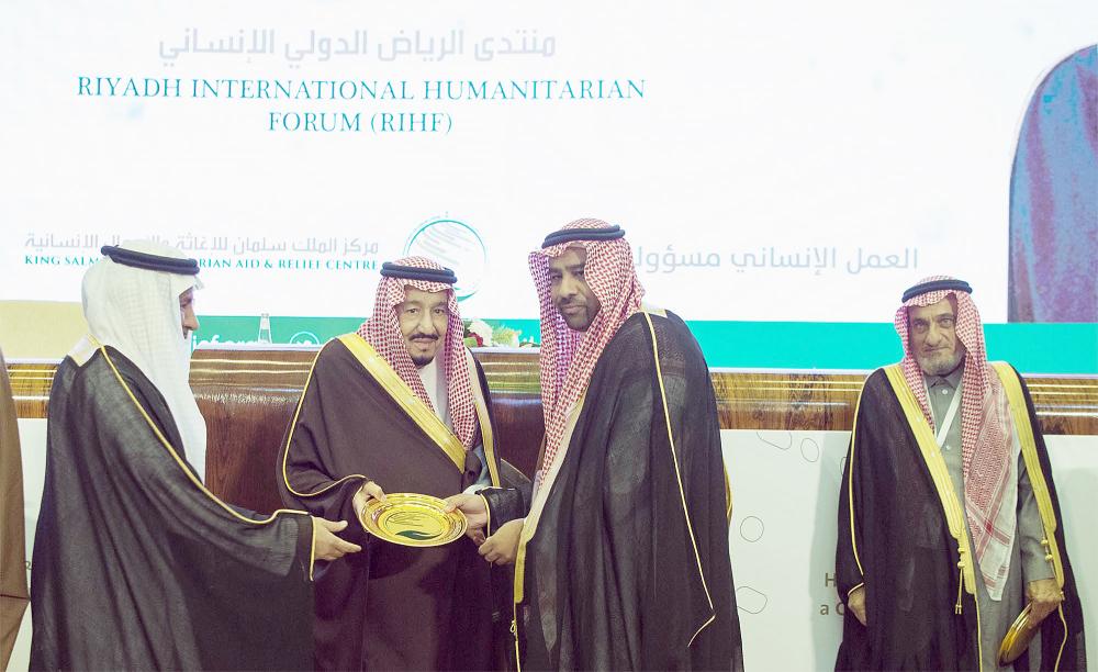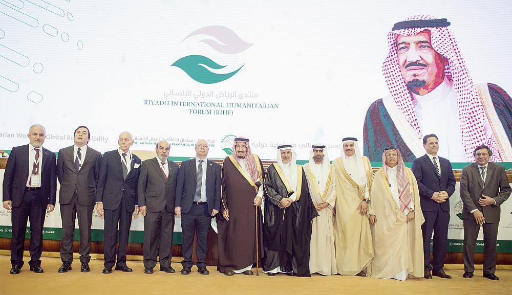 رعى خادم الحرمين الشريفين الملك سلمان بن عبدالعزيز بعد ظهر أمس (الإثنين) حفل افتتاح منتدى الرياض الدولي الإنساني، وذلك في قاعة الملك فيصل للمؤتمرات بفندق الإنتركونتننتال.* الربيعة: المركز مد يد العون للمتضررين في 40 دولة عبر 330 مشروعاً إغاثياً