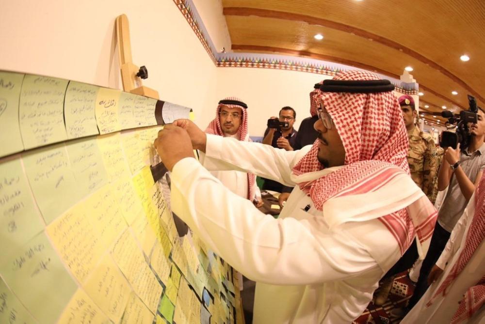 وجسّد جناح منطقة عسير المشارك في المهرجان الوطني للتراث والثقافة، معاني الحب والوفاء للأمير منصور بن مقرن بتخصيص 3 أركان في معرض الحرفيين جمع أولها صورة الأمير منصور بن مقرن ومرافقيه الـ 10 الذين وافتهم المنية إثر تحطم المروحية التي كانت تقلهم في عسير، مذيلة بعبارة «لن ننساكم»، والثانية تحمل صورة الراحل بعد أن كساها زوار المهرجان بالملصقات التي تحمل قصص الأعمال الخيرية والمشاريع التنموية التي شارك في تنفيذها وإقراراها وإفتتاحها ومتابعتها، إلى جانب عبارات الحزن والألم على رحيله، لتنثر بين سطورها ما تكنه الأعين وتخفيه الصدور من محبة وتقدير ودعاء للأمير منصور بن مقرن، مستذكرين أبرز مواقفه الإنسانية التي سجلها خلال زياراته وجولاته في المنطقة، مذيلين رسائلهم بالتضرع إلى الله تعالى أن يتغمد الأمير منصوربن مقرن ومرافقيه بواسع رحمته ويسكنهم فسيح جناته، كما تستوقف اللوحة الأخيرة زوار الجناح بعبارة دونها خلال زيارته لإحدى البرامج الدعوية بأبها ذيلها بتوقيعه، قال فيها (لقد سعدت بزيارتي لهذه الخيمة المباركة تحت مظلة جمعية البر بأبها وأشكر القائمين عليها).