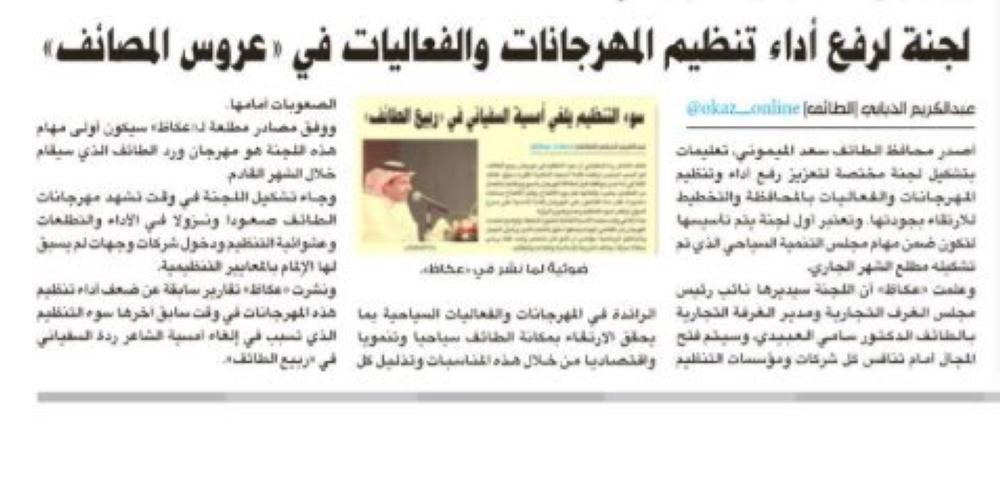 تصدر ملف الإعداد المبكّر لمهرجان ورد الطائف القادم أولى جلسات مجلس التنمية السياحي بالمحافظة، والذي رأس أعماله أمس (الأربعاء) محافظ الطائف سعد الميموني، بعد موافقة مستشار خادم الحرمين الشريفين أمير منطقة مكة المكرمة الأمير خالد الفيصل على إعادة تشكيله.