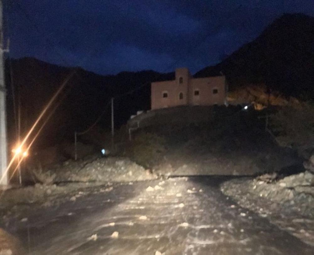 وطالب الأهالي بتعليق الدراسة خوفاً على أبنائهم وبناتهم، حيث يشهد طريق محايل أبها انهيارات صخرية.