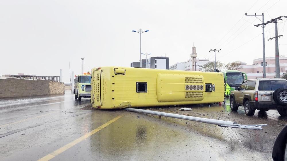 وفي أبها، أصيبت 15 طالبة جراء انقلاب حافلة نقلهن بسبب الأمطار الغزيرة التي شهدتها المدينة، وفقا للمتحدث باسم جامعة الملك خالد الدكتور عبدالله حامد، مبينا أن حالاتهن ما بين البسيطة إلى المتوسطة، ونقلت 12 حالة إلى المستشفى المدني بخميس مشيط، وغادرت 10 حالات منهن المستشفى ونقلت 3 حالات إلى المستشفى السعودي الألماني.