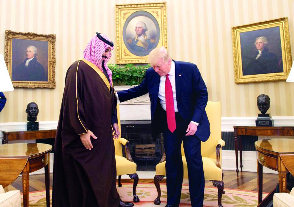 ترمب مستقبلا الأمير محمد بن سلمان في البيت الأبيض أخيرا.