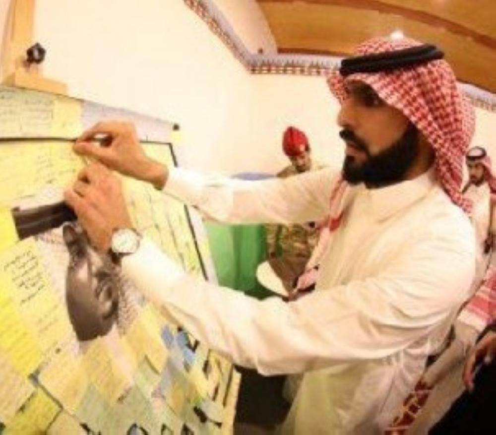 وتنوعت الرسائل التي دونت على اللوحة بين عبارات الحزن والألم على رحيله، ونثرت بين سطورها ما تكنه الصدور من محبة وتقدير ودعاء للأمير المحبوب، واستذكار لأبرز مواقفه الإنسانية التي سجلها ـ رحمه الله ـ خلال زياراته وجولاته في منطقة عسير، مذيلين رسائلهم بالتضرع إلى الله أن يتغمده بواسع رحمته ويسكنهم فسيح جناته.
