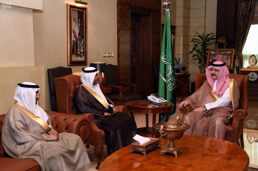 الأمير مشعل بن ماجد مستقبلا القرني والسبيعي. (عكاظ)