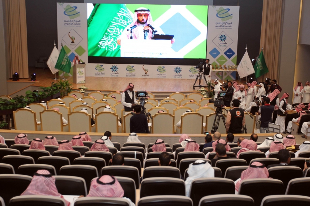 وأوضح في كلمته خلال حفلة إطلاق شبكة الموارد السعودية (شمس) وتوزيع جوائز التميز في التعليم الإلكتروني في نسختها الرابعة، التي نظمها المركز الوطني للتعليم الإلكتروني أمس (الإثنين) بمقر وزارة التعليم، التي ألقاها نيابه عنه نائبه الدكتور عبدالرحمن العاصمي، أن للمركز منطلقات ومهمَّات مستقبلية، منها: إظهارُ خصوصيةِ المجتمعِ السعوديِّ وتميزَّه بمبادئه الإسلاميةِ وقِيَمِه الاجتماعية، إضافةً إلى مسايرةِ الحراكِ العالميِّ والتوجّهِ القوي في تبنّي المواردِ التعليميةِ المفتوحة في توجه يعد من التوجهات الداعمة لتحول نوعي من الأنماط التقليدية في التعليم إلى أنماط تتمحور حول المتعلم وتستند لأصول تعليمية تكرس مزيداً من مهارات التعلم وقليلاً من أنماط التدريس والتلقين. ولفت إلى الدعم الذي تلقته شبكةِ المواردِ السعوديةِ «شمس»، إذ أسهمَت أكثر من 75 مؤسسة تعليمية بأكثر من 80 ألف مورد تعليمي، وبادرَ 1000 عضوِ هيئةِ تدريسٍ بالجامعاتِ ومعلمٍ ومعلمةٍ في التعليمِ العامِّ، بتزويدِ الشبكةِ بـ 15 ألفَ موردٍ تعليميٍّ، وأطلقَتْ المؤسسات التعليمية أكثرَ من 10 مسابقاتٍ في تشجيعِ المعلمين على إنتاجِ ونشرِ المواردِ التعليميةِ، مع إقامةِ 34 ورشة تدريب حضرها أكثر من 2500 تربوي. من جانبه، أوضح مدير عام المركز الدكتور عبدالله بن محمد المقرن، أن «الهدف الأسمى» للمركز الوطني للتعليم الإلكتروني «يتمثل في دعم التجارب المميزة في مجال التعليم الإلكتروني، لتمهيد الطريق لمستقبل واعد من خلال المنافسة الشريفة، والآفاق الواسعة، والعمل الدؤوب للتميز دائماً، في ظل توجيهات قادة بلادنا -حفظهم الله- في كل ما يمكّن الابتكار والإبداع، ودعم دور التعليم في بناء الموارد البشرية منجم الاقتصاد المعرفي تحقيقاً لتطلعات رؤية المملكة 2030.