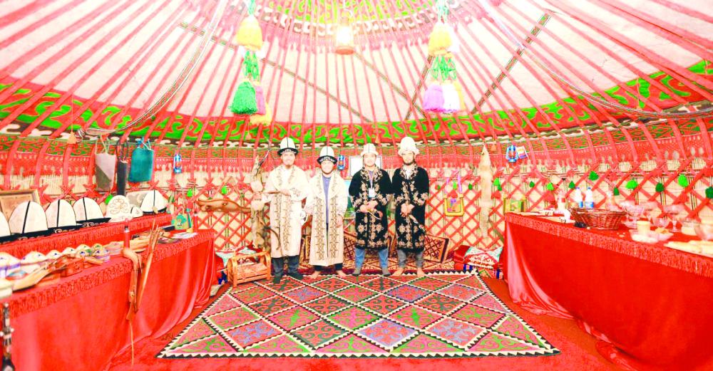 من جانبه، أكد المشرف على جناح قيرغيزستان أحد طلاب الجامعة نور علي لـ«عكاظ» أن المسلمين في بلاده يمثلون 85%، والخيمة المتنقلة المشاركة تمثل حضارة بلاده، مشيرا إلى أن صناعتها استغرقت يدويا 4 أشهر، من الخشب المقوس المغطى بصوف الغنم، وهي نموذج لأقدم البيوت في آسيا الوسطى، وهيكلها من أشجار الطرفان، فيما يتألف سقفها من خشب يشبه التاج مع كسوتها بعدة طبقات من الألياف، ولباد صوف الغنم من أجل العزل ومقاومة عوامل الطقس المختلفة وتحمل المطر الغزير لمدة 7 أيام متواصلة، وتعتبر الخيول هي الصديق الودود للشعب القيرغيزي، إذ يتناولون لحومها وحليبها، وركوبها يعد الرياضة الأبرز لهم.