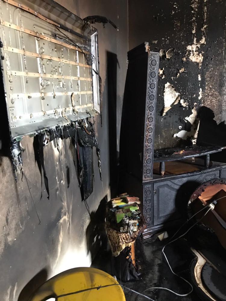 حريق شقة المقيم بتبوك. (عكاظ)