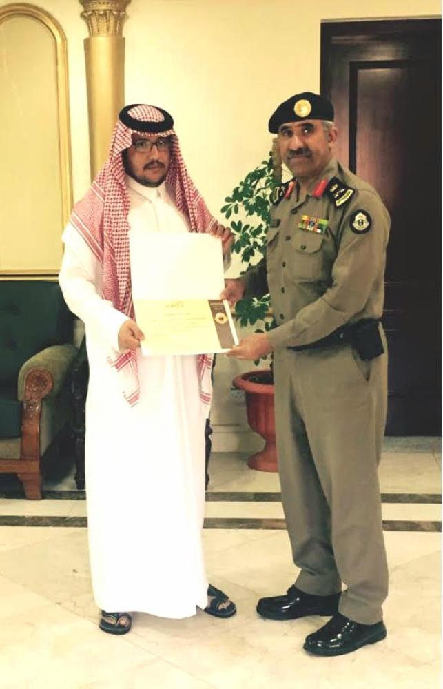 اللواء القرزعي خلال تكريمه المواطن الشهراني.
