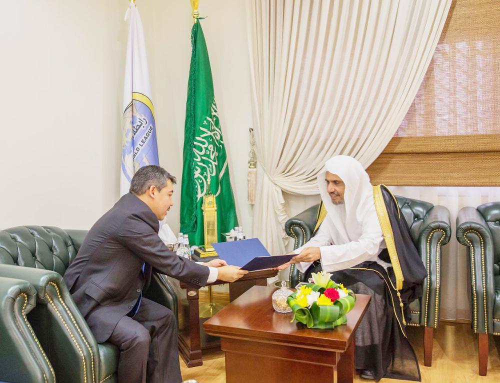 تلقى أمين رابطة العالم الإسلامي الشيخ الدكتور محمد بن عبدالكريم العيسى، دعوة رسمية من رئيس جمهورية كازاخستان نور سلطان نزاربايف؛ لحضور مؤتمر زعماء الديانات العالمية والتقليدية في أستانا، سلمها له سفير جمهورية كازاخستان لدى المملكة باخيت باتير شايف خلال استقباله له في مكتبه بالرياض.