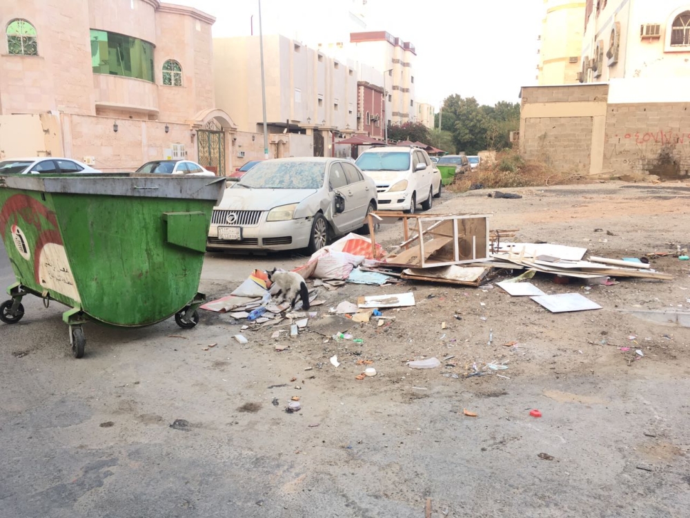 نفايات منتشرة في الحي.