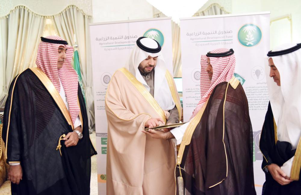 الأمير فيصل بن خالد مستقبلا مدير وقيادات صندوق التنمية الزراعية. (عكاظ)