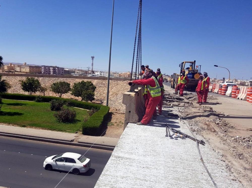 كما خاطبت الوزارة الجهات ذات العلاقة من أجل إصدار تصاريح العمل، وإيقاف الحركة المرورية أسفل الجانب المتضرر من الجسر، وبدأ العمل فعلياً على الجسر في الثالث من شهر فبراير الماضي, بإزالة الأحزمة الخرسانية في المواقع المتضررة واستبدالها بأخرى جديدة، وتم الانتهاء من جميع أعمال صيانة الجسر، وافتتاحه للحركة المرورية.