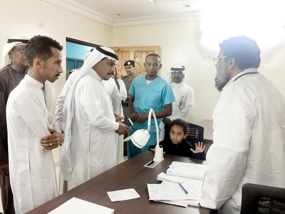 النجمي متفقداً المنشآت الصحية في جازان. (عكاظ)
