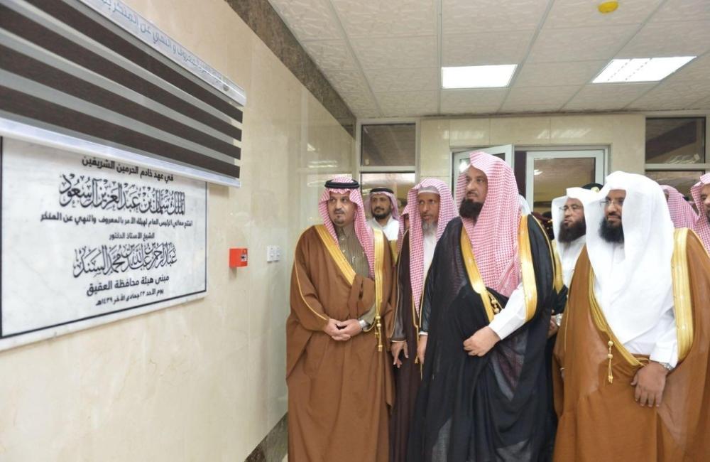 افتتح الرئيس العام لهيئة الأمر بالمعروف والنهي عن المنكر الشيخ الدكتور عبدالرحمن بن عبدالله السند، مبنى هيئة محافظة العقيق بمنطقة الباحة, بحضور محافظ العقيق غلاب بن غالب أبو خشيم, ومدير عام فرع الرئاسة بمنطقة الباحة الشيخ سعيد الزهراني, وجمع من مسؤولي الفرع المحافظة.