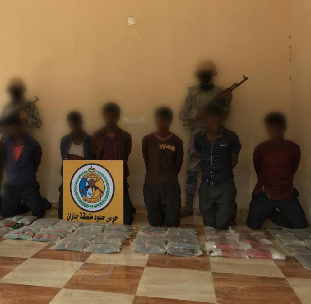 صرح المتحدث باسم حرس الحدود أنه استمرارا لتنفيذ رجال حرس الحدود لمهماتهم في رصد الشبكات الإجرامية التي تمتهن تهريب المواد المخدرة عبر حدود المملكة البرية، فقد تمكن رجال حرس الحدود في المناطق الجنوبية (جازان، نجران، عسير) بعد توفيق الله خلال الفترة من 1439/6/23 وحتى 1439/6/29 من إحباط عدة محاولات لتهريب كميات من مادة الحشيش المخدر، حيث تم رصد عدة أشخاص قادمين من الأراضي اليمنية بغرض تهريب المواد المخدرة، ما حتم التعامل معهم بكل حزم وقوة حسب مقتضيات الموقف، وأسفر ذلك عن القبض على 13 مهرباً، منهم سبعة إثيوبيين، وأربعة يمنيين، وإريتري واحد، وسعودي واحد.