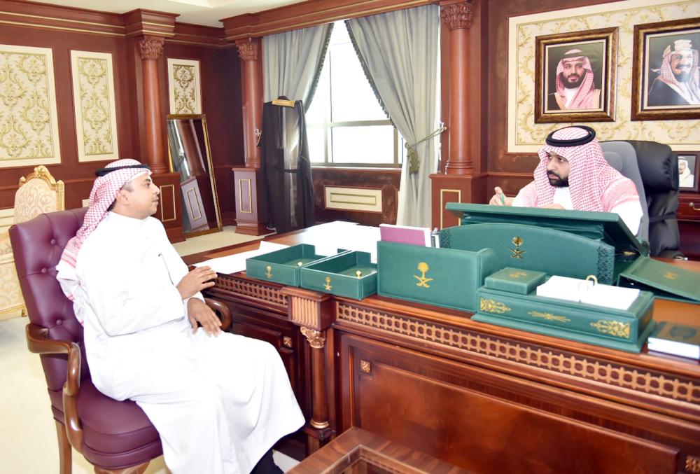 نائب أمير جازان ملتقيا مدير فرع وزارة العمل بالمنطقة. (عكاظ)