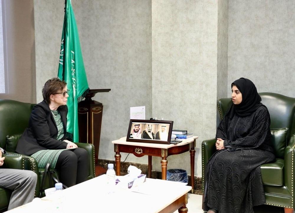 وجرى خلال اللقاء، بحث عدد من الموضوعات ذات الاهتمام المشترك، وسبل تعزيزها بما يخدم البلدين في مختلف المجالات والأصعدة، كما تطرق اللقاء إلى تمكين عمل المرأة في سوق العمل انطلاقًا من رؤية المملكة 2030.