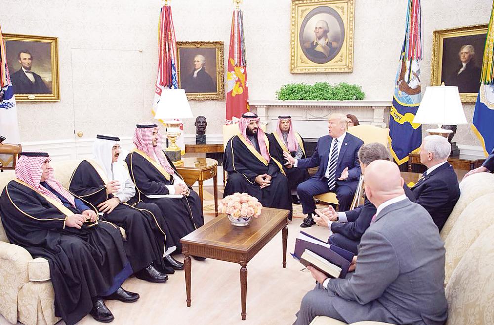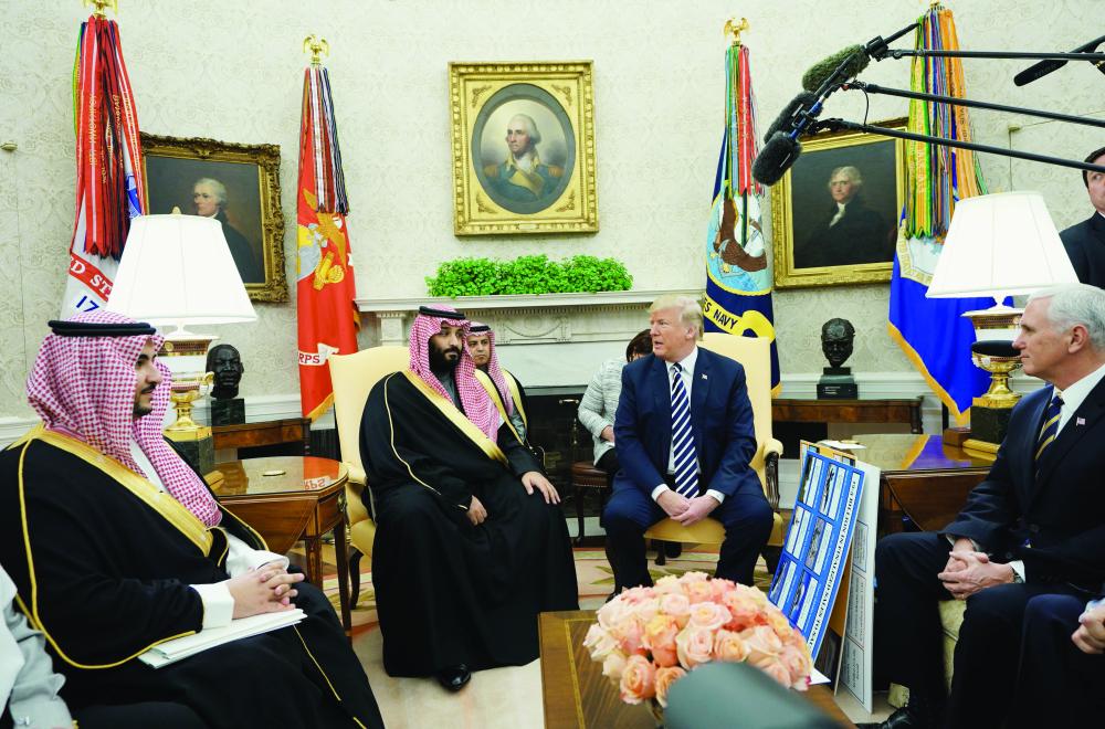 كشف ولي العهد نائب رئيس مجلس الوزراء وزير الدفاع الأمير محمد بن سلمان بن عبدالعزيز، خلال محادثاته مع الرئيس الأمريكي دونالد ترمب في المكتب البيضاوي أمس (الثلاثاء)، عن عمل الرياض وواشنطن على خطة لاستثمار 200 مليار دولار بين البلدين. فيما أكد ترمب أن العلاقات السعودية - الأمريكية «أفضل من أي وقت مضى»، مشيداً بصداقته مع ولي العهد، ووصفها بـ«العظيمة».