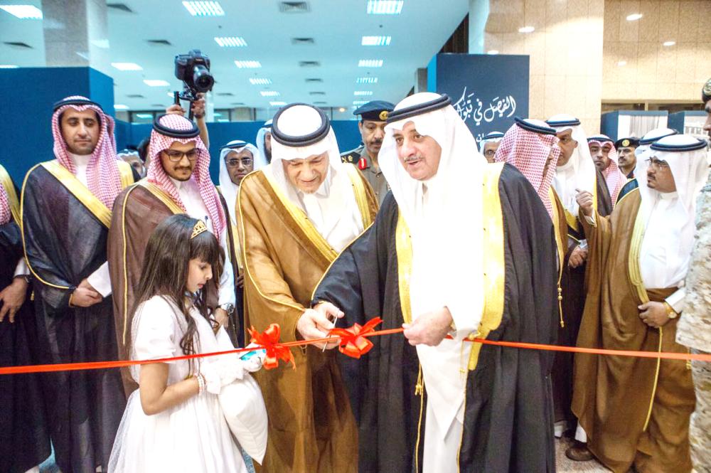 الأمير فهد بن سلطان أثناء تدشين المعرض بحضور الأمير تركي الفيصل. (عكاظ)