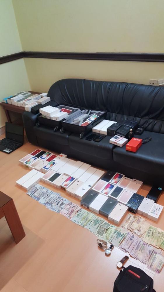 وأضاف المتحدث الإعلامي بشرطة منطقة الرياض: "تم وضع كمين محكم والقبض عليهم جميعاً عند الساعة الثانية من صباح يوم الأربعاء 4/7/1439هـ، وبحوزتهم كمية من أجهزة الهواتف الذكية والعطورات، جاء بعضها مطابقاً لمواصفات المسروقات المشار إليها في بلاغات مقيدة لدى مراكز الشرطة، فضلاً عن مبالغ مالية ولوحات مركبات مسروقة".