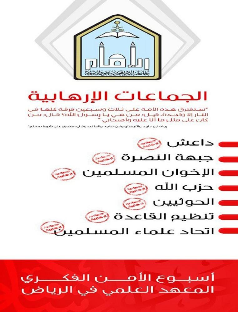 جامعة الإمام: نشر لوحات في الكليات تتضمن أسماء الأفراد والجماعات الإرهابية