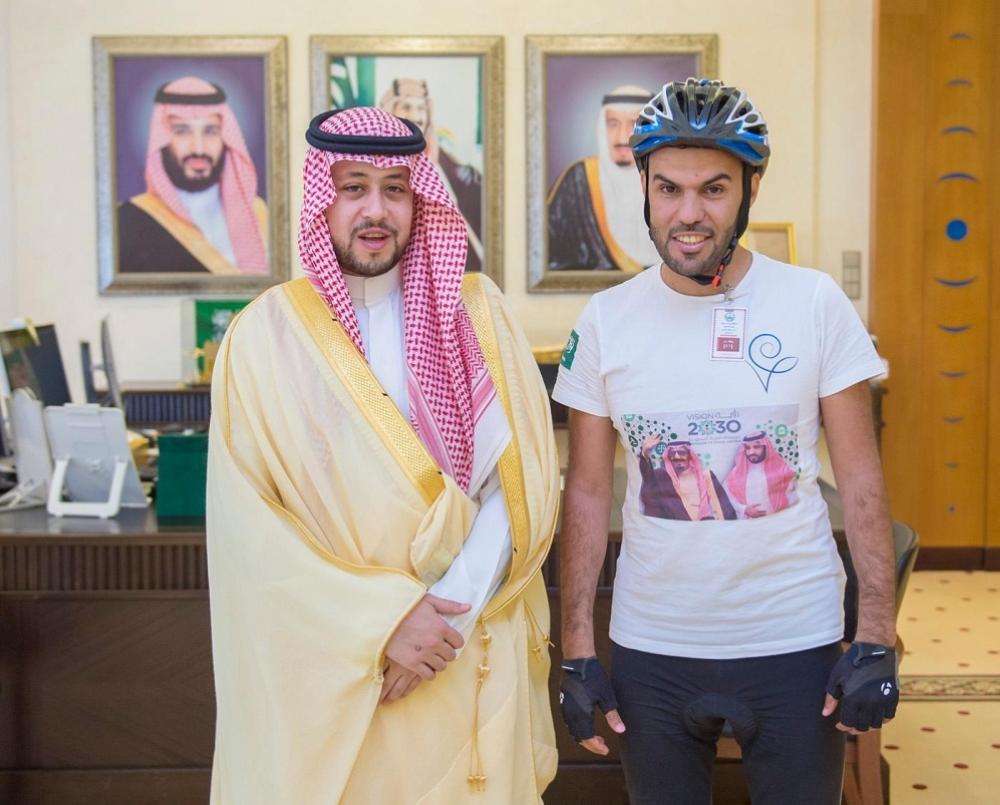 نائب أمير القصيم يستقبل رحالاً سعودياً قرر السفر إلى «موسكو» بالدراجة