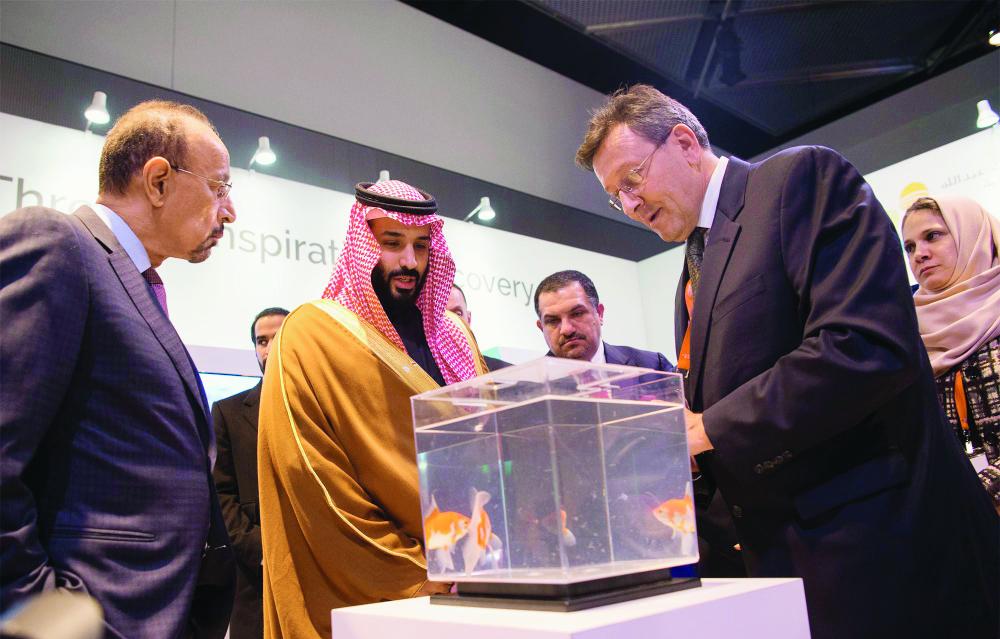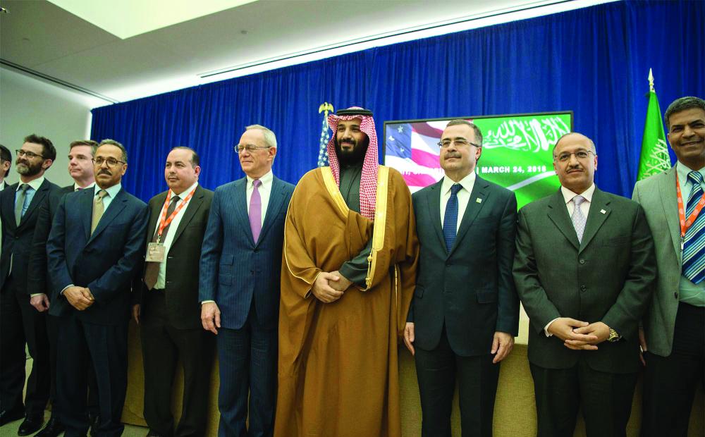 وفي جناح أرامكو، عرض مركز أبحاث أرامكو السعودية في بوسطن نماذج من برامج المركز التي منها تحويل الزيت الخام للمواد الكيميائية بنسبة 70 %، وبرنامج محاكاة الزيت والغاز، وتصنيع ثلاثي الأبعاد، وتقنيات النانو، وتحويل ثاني أكسيد الكربون إلى مواد كيميائية لتقليل الانبعاثات للمحافظة على المناخ. كما زار ولي العهد في بوسطن، جامعة هارفرد حيث التقى عميد الجامعة آلان غاربر وأعضاء من هيئة التدريس، واستعرضا خلال اللقاء أوجه التعاون بين المملكة والجامعة في عدد من المجالات، وفرص تطوير التعاون خاصة في الأبحاث المتقدمة في مجالات مثل ريادة الأعمال وهندسة النظم وتطوير أساليب التعليم لمواكبة تحديات العصر. وعقد ولي العهد في بوسطن اجتماعا مع رؤساء الجامعات وكبرى الكليات والمعاهد فيها، وهم عميد جامعة هارفرد آلان غاربر، ورئيس معهد ماساتشوستس للتكنولوجيا رافائيل ريف، ورئيس جامعة بوسطن بوب براون، ورئيس جامعة تفتس أنتوني موناكو ورئيس جامعة نورث إيسترن جوزيف عون ورئيس كلية بابسون كيري هيلي. وجرى خلال الاجتماع استعراض مجالات التعاون بين المملكة والمؤسسات التعليمية في بوسطن في الجانبين العلمي والبحثي، وتعميق الشراكة معهم عبر مبادرات عدة وفق رؤية المملكة العربية السعودية 2030.
