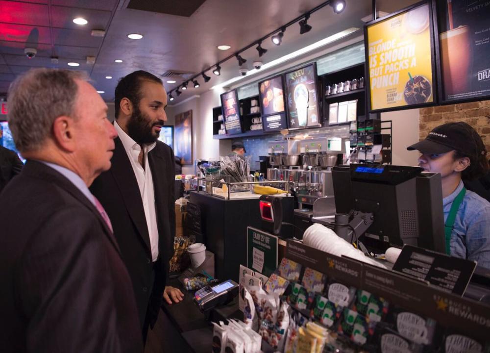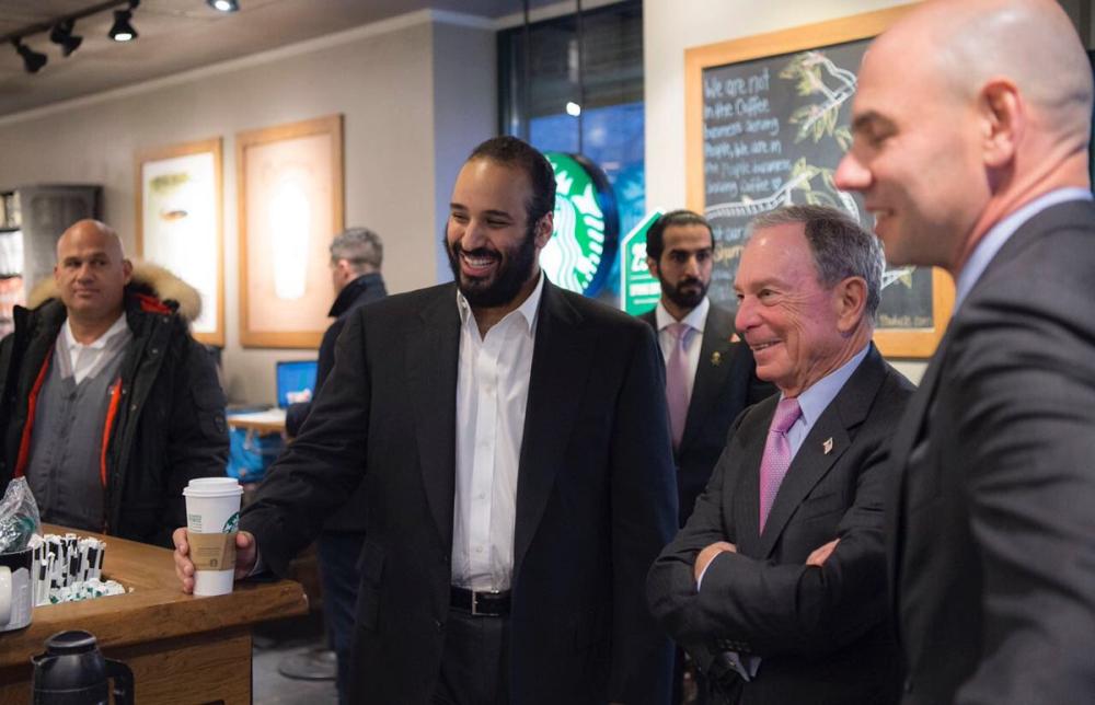 بعيدا عن صخب الاجتماعات واللقاءات والبروتوكولات التي صاحبت زيارة ولي العهد نائب رئيس مجلس الوزراء وزير الدفاع الأمير محمد بن سلمان للولايات المتحدة الأمريكية نشر مدير المكتب الخاص لولي العهد بدر العساكر صورا لولي العهد الامير محمد بن سلمان ومؤسس بلومبيرغ وحاكم مدينة نيويورك سابقا يقفان في أحد مقاهي نيويورك.