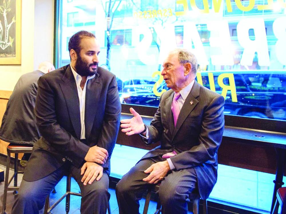 الهموم والملفات الكبيرة لا تتقاطع مع «الأنسنة» والسلاسة التي درج عليها ولي العهد في حراكه اليومي الممتد ومباشرته لحركة التغيير والإصلاح بالسعودية، فلم يفوت الأمير محمد فرصة خلال زيارته الحالية للولايات المتحدة الأمريكية إلا واستغلها لمناقشة أولويات السعودية والسعوديين، فما أن نوى أن يحصل على وقت قصير للاسترخاء، بعيدا عن الأجواء الرسمية، في أحد مقاهي نيويورك، أمس الأول (الأربعاء)، حتى اصطحب رجل الأعمال مايكل بلومبيرغ، عمدة نيويورك السابق، ومؤسس وكالة بلومبيرغ، لتظل مناقشات العمل على رأس اهتماماته.