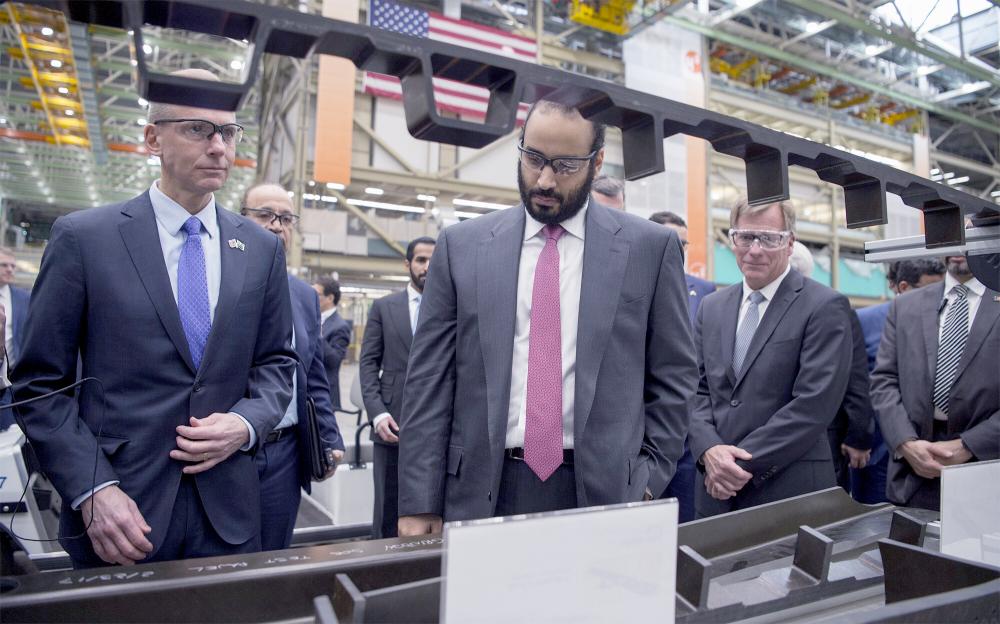 رعى ولي العهد نائب رئيس مجلس الوزراء وزير الدفاع الأمير محمد بن سلمان بن عبدالعزيز، في مدينة سياتل الأمريكية أمس الأول (الجمعة) حفل توقيع اتفاق تأسيس مشروع مشترك يهدف إلى توطين أكثر من 55% من الصيانة والإصلاح وعمرة الطائرات الحربية ذات الأجنحة الثابتة والطائرات العمودية في المملكة العربية السعودية، إضافة إلى نقل تقنية دمج الأسلحة على تلك الطائرات وتوطين سلسلة الإمداد لقطع الغيار داخل المملكة، وذلك تحقيقاً لرؤية المملكة 2030 وإعلانه توطين 50% من الإنفاق العسكري بحلول عام 2030. وجرى توقيع الاتفاق بين الشركة السعودية للصناعات العسكرية (SAMI) وشركة بوينج، وقعها رئيس مجلس إدارة الشركة السعودية للصناعات العسكرية أحمد الخطيب والرئيس التنفيذي رئيس مجلس إدارة شركة بوينج دينيس مولنبرج.