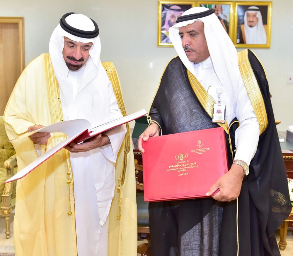 وتسلّم أمير نجران خلال اللقاء مجلدًا توثيقياً عن رصد النشاط السياحي في وسائل الإعلام في المنطقة خلال العام الماضي، تحت عنوان «نجران تاريخ وحضارة.. في عيون الإعلام»، معربًا عن شكره للقائمين على هذه الجهود، التي تحظى بإشراف ومتابعة رئيس الهيئة العامة للسياحة والتراث الوطني الأمير سلطان بن سلمان بن عبدالعزيز.