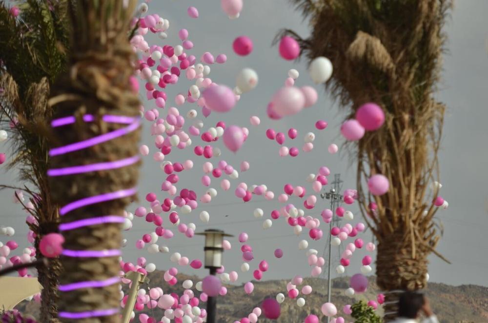 وكان مهرجان ورد الطائف 14 الذي يقام تحت رعاية أمير منطقة مكة المكرمة، ودشنه محافظ الطائف، قد شهد كرنفالا مختلفا ومميزا، حيث أمطرت سماء الطائف أمس وردا على موقع المهرجان، إذ رشت طيارات القاعدة الجوية أكثر من 150 ألف وردة على زوار مهرجان الورد، وتم إطلاق 3 آلاف بالونة بألوان الورد عند الافتتاح