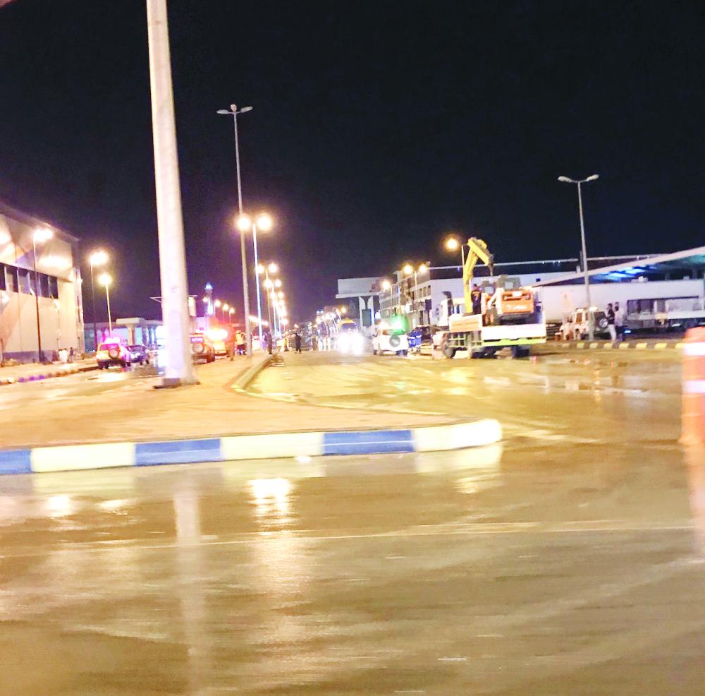فرق الدفاع المدني تباشر الحادثة. (عكاظ)