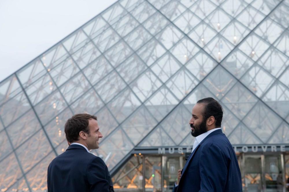 ووفق صور بثها المصور بندر الجلعود، يظهر القائدان وهما يتجولان في متحف اللوفر بباريس.