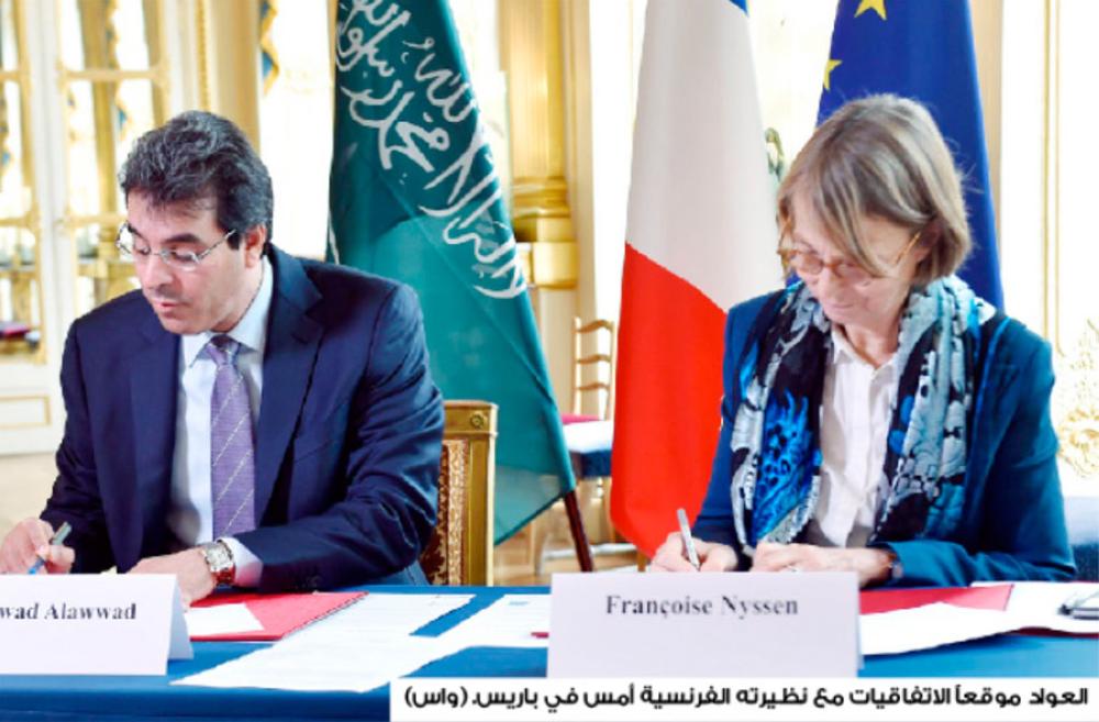 وعقب الاجتماع، وقع العواد، ونظيرته الفرنسية اتفاقية تعاون في مجالات الثقافة والأدب والفنون وصناعة السينما والمسرح والموسيقى.