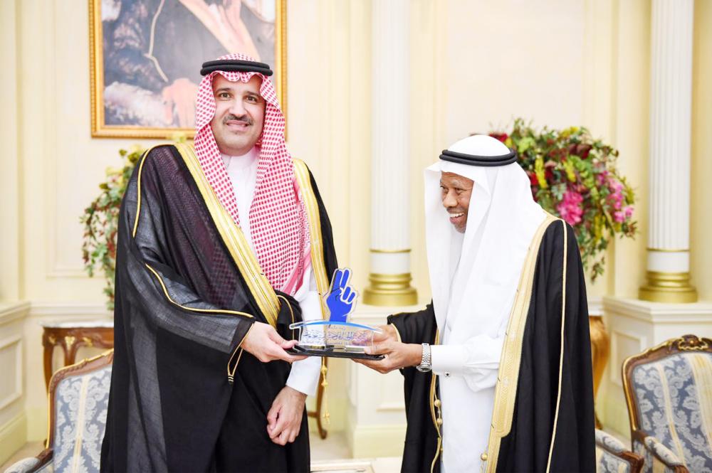 الأمير فيصل بن سلمان متسلماً هدية تذكارية.