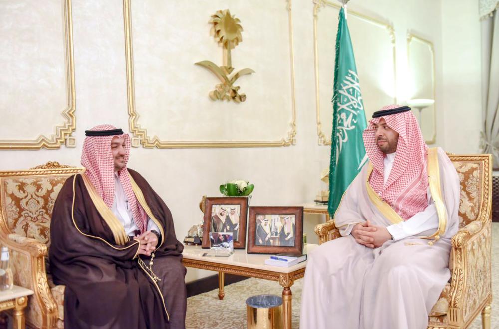 الأمير فيصل بن خالد مستقبلا مدير فرع هيئة الإحصاء. (عكاظ)